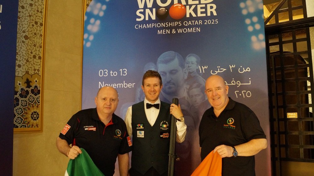 Ireland’s Brendan O Donoghue will fly the Irish flag in the 2025 IBSF World Snooker Championships here in Doha Qatar from the 9th to the 13th November. Brendan who won the Nenagh International Open last week has qualified for stage 2 after reaching last 16 last year. He travelled to Qatar with our National Coach