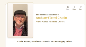 Snooker & Billiards Ireland sends its sincere condolences to the family of Anthony Cronin from Limerick on the passing of his father Anthony (Tony) Cronin.