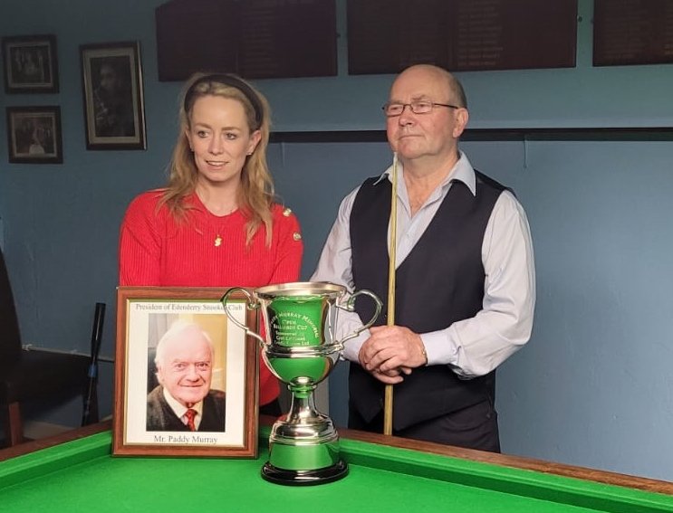 The Paddy Murray Memorial handicap billiards tournament took place at Edenderry Snooker Club on Sunday, 3rd of November 2024. After a day’s play, which saw many interesting games, the trophy went to Joe Doheny (Borris-in-Ossory), a fitting reward for the consistently high standard of play he showed throughout the day.