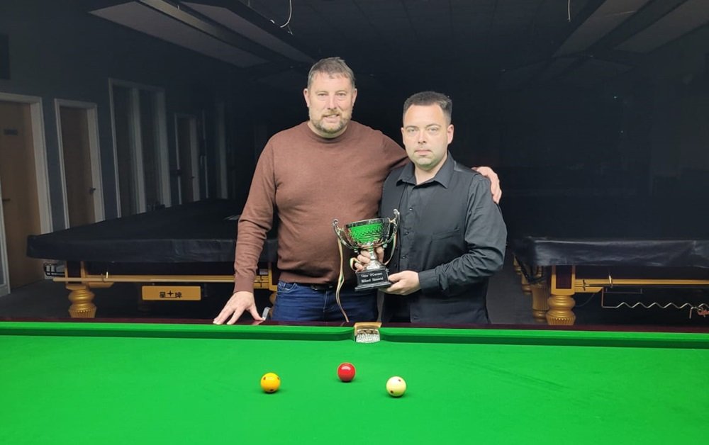 Both players missed several times when on the table but eventually Wayne had the momentum and went 50 points ahead although Aidan reduced it to 35 points but time ran out and Wayne Doyle was once again a well deserved winner of the coveted trophy of the man who mentored him in his rise to the top of Irish Billiards. Victor O’ Gorman’s son Gary was on hand to present the trophy to Wayne who has now won it three years on the trot on a scoreline of 282-247.