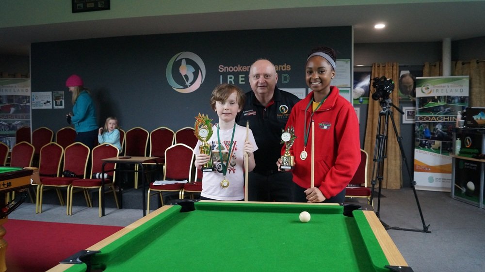 Today 10yr old Lughaidh from Dublin welcomed 13yr old Janelle from Loais to introduce her to game of Snooker. Janelle never played snooker before. They used the full-size table and the small star tables. Our National Coach PJ Nolan was on hand to assist everyone in learning the correct fundamentals on the day.
