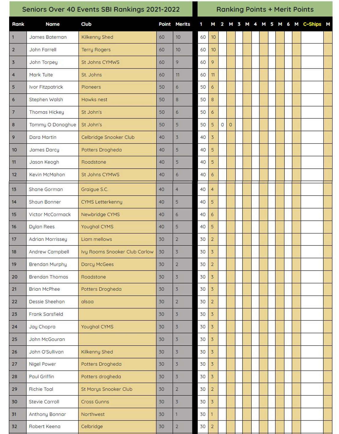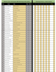 • Seniors Over 40 Events 2022/2023